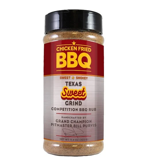 Chicken Fried BBQ’s Texas Sweet Grind is the next installment in Bill Purvis’ line of Texas inspired, championship BBQ rubs. Texas Sweet Grind is a perfectly balanced blend of sweet and smokey, making it an ideal all purpose rub. Great as a standalone rub, or layered in competition BBQ style cooking.